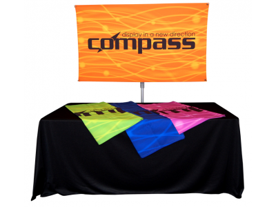 The Compass 1 Banner Stand is a novel new idea that combines the qualities of a banner stand with that of a table top display. The banner size is 36" x 60" which instantly gives you a big presence if mounted behind the table or out front on its own. It's light weight and easy to tansport and easy on the pocket too!