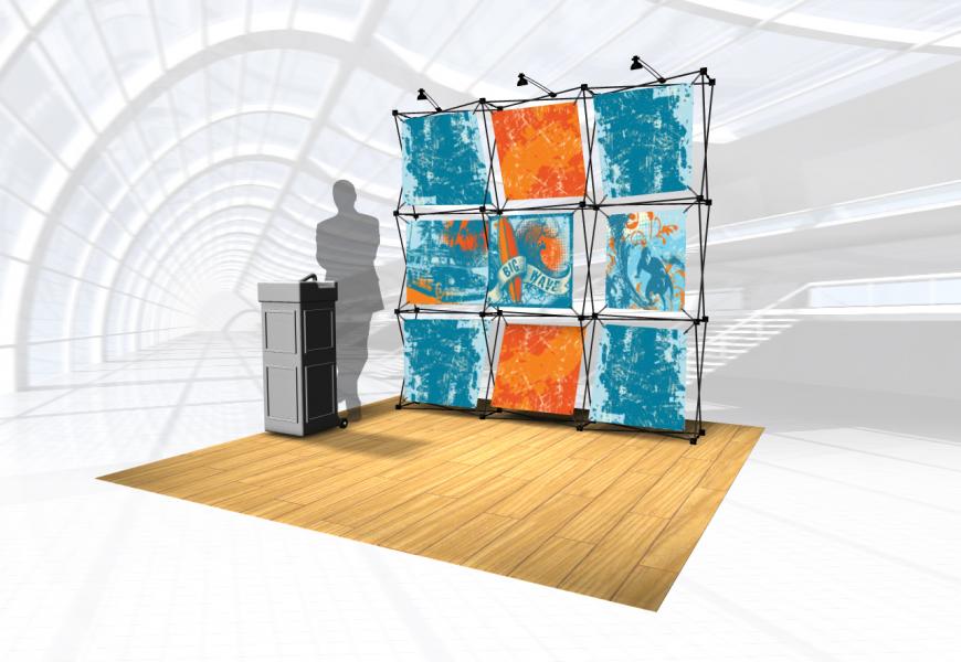 Kit A - 3 x 3 Xpressions Snapshot : One of the front runners in the online retailers of trade show displays, ShopForExhibits.com, continues to expand what they make available to their U.S. clientele, through their display rentals program which was begun only two short years ago, and the new tension fabric products. To keep up with the business activity they project in the future, ShopForExhibits has recently gone live with an entirely new web site which provides prospective customers with an elevated level of product support along with product videos and product templates. Due to the current economic climate, that is anything but predictable, online retailers have to be flexible in what they offer the buying public as well has being sensitive to the declining price point that companies are able to pay for trade show related merchandise. Successfully bringing new products to market such as the new tension fabric displays, isn't as simple as one would think, but due to their background with display products and online marketing, ShopForExhibits.com has positioned themselves to lead the pack and be a successful competitor in this industry.