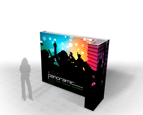 Panoramitm aluminum extrusion frame is a unique concept. The entire display is transformed into one continuous fabric graphic design. The exhibit structure truly becomes your brand image or message. The SEG (silicone edge graphic) fabric graphics are of the highest image quality and custom finished to match your specific design. The fabric graphics fold up making your entire display easy to store and transport.