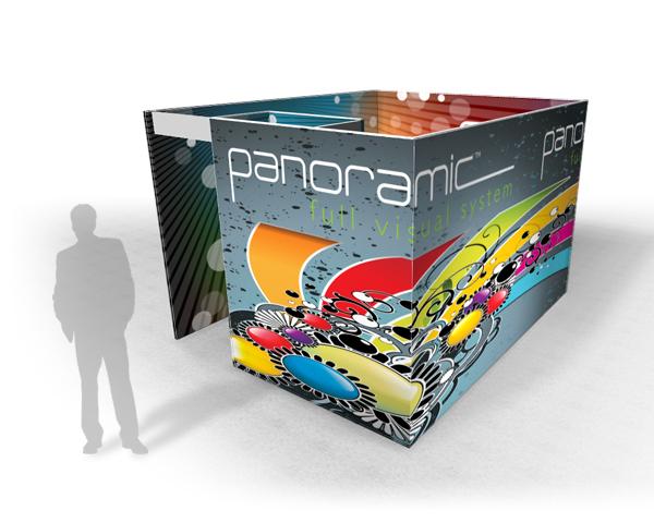 Panoramic aluminum extrusion frame is a unique concept. The entire display is transformed into one continuous fabric graphic design. The exhibit structure truly becomes your brand image or message. The SEG (silicone edge graphic) fabric graphics are of the highest image quality and custom finished to match your specific design. The fabric graphics fold up making your entire display easy to store and transport.