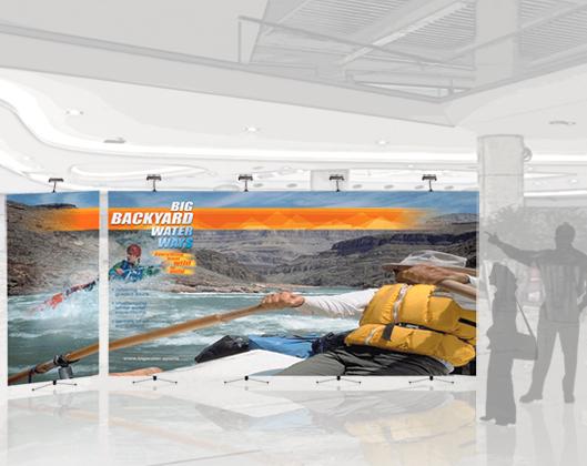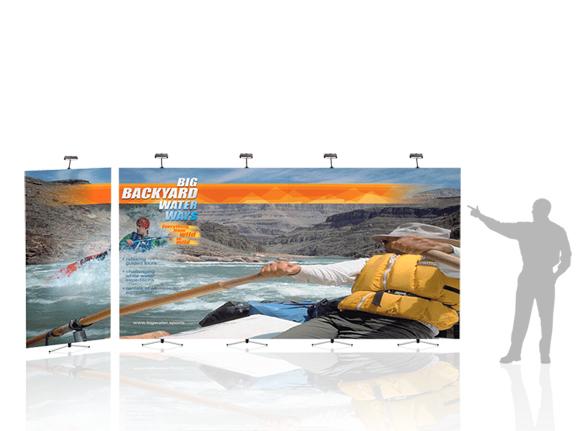 Range Banner Stand: The Range uses state-of-the-art edge magnet technology and a slide-lock hardware connection system to create a seamless graphic mural or backdrop by combining multiple Range units together. It can be single or double-sided, has adjustable mast and panel height and comes with a carrying case. The bottom of the graphic is fully adjustable. No tools required. The Range units can be purchased without a graphic. This product only allows for Lambda laminated graphics. A 3-panel mural creates a 9'10" mural; ideal for a 10' space.