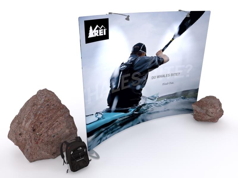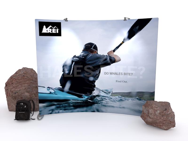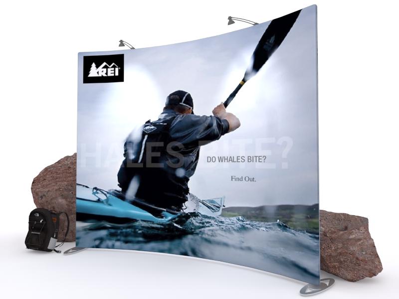 The frames are constructed from high quality aluminum CNC-milled extrusion. Each component is carefully numbered, so that setting up and tearing down is a breeze. Manufacturered in the USA, this curved frame display is built for sustainable long-term use. Pair the durability of the unit with the vibrant tension fabric graphics and you're sure to have a first class display that draws everyone's attention.
