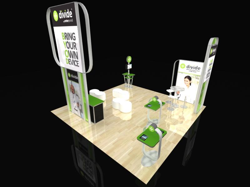 There's nothing shy about an island display. It says you've arrived. Studies show that exhibitors naturally gravitate to a well-designed island exhibit. It attracts attention for several reasons. Island graphics are almost always larger than inline graphics. Large graphics make a statement, whether through color, size, messaging or all three. Second, island exhibits allow for conferencing, presentation, large monitors, and demonstrations. Crowds attract crowds.