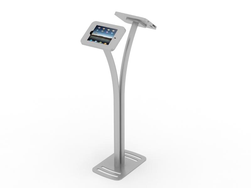 MOD-1334 iPad Kiosk: by Classic offers customers the ability to professionally integrate their IPad product with their display presentation and not have it look like an add on. The iPad sits recessed into the coutner top and is securred from below to prevent theft.