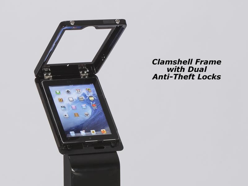 - Modular Assembly: (1) Clamshell iPad Frame, (2) Base Plates, (1) Support (requires Philips Head Screw Driver)