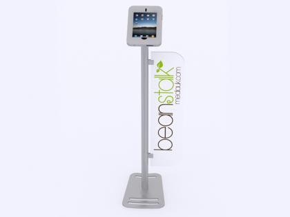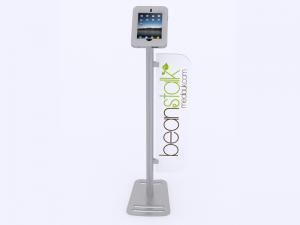 The MOD-1323 graphic wing option reinforces your branding on the MOD-1335 iPad Kiosk. Choose either Sintra or plex as the substrate. The wing attaches without tools. All can be combined with the popular halo or face plate graphic on the locking clamshell frame.