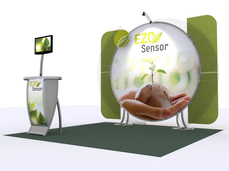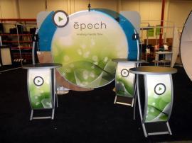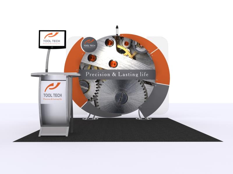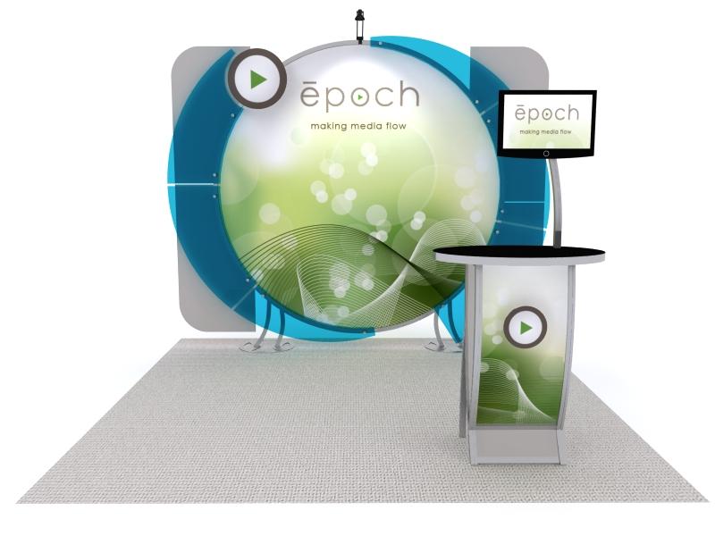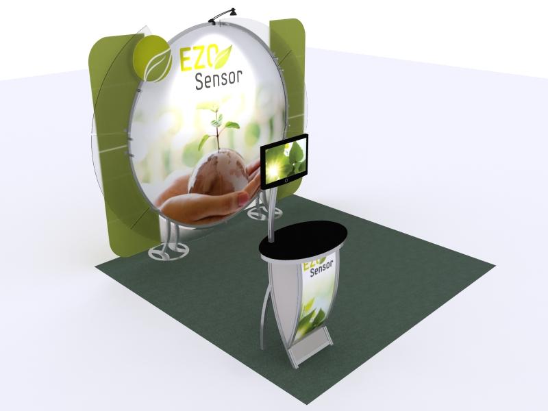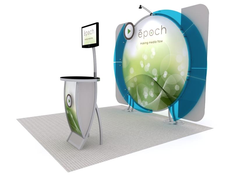 If 50 is the new 30, then circles and curves are the new squares and rectangles. Here's the bottom line: You go to a trade show to be seen, so be seen with an exhibit that elicits "Oohs and Aahs." Don't settle. The VK-1320 and VK-2919 do more than communicate your message with bold tension fabric graphics and colorful accent wings. They have a power and presence to stop an attendee in the aisle. That's what you want from a trade show display. Both reconfigurable 10 ft. and 20 ft. versions come with VK-1605 workstation, which is perfect for an A/V demo or just guiding a potential client through your website.
