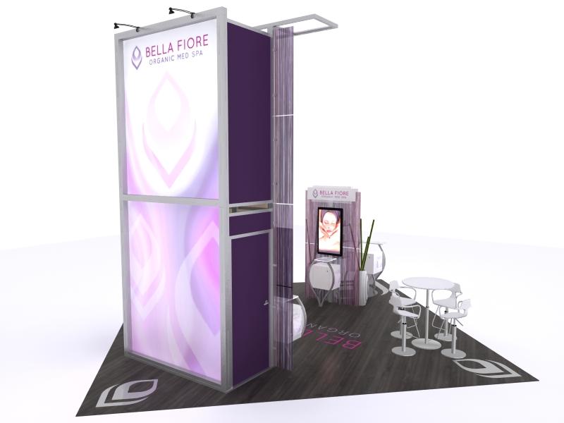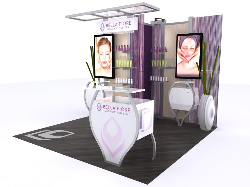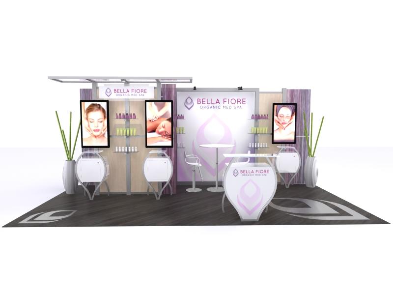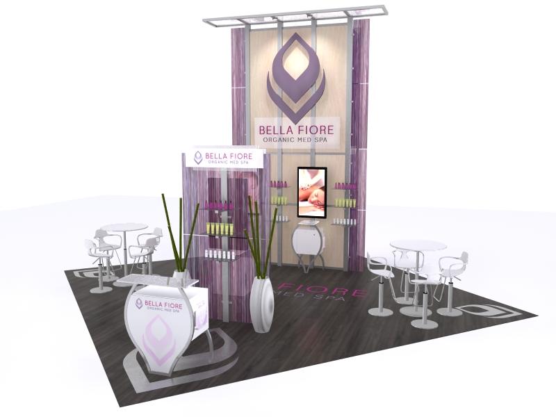 There's usually a tradeoff when it comes to elegant design vs. versatility. But not with the "Bella Flore" design series. These remarkable exhibits are upscale and distinctive, yet packaged with a multitude of practical features. The flowing counters include ample storage. There are multiple shelves. The tension fabric and direct print graphics are designed to work seamlessly on the inline and island versions. There's even a closet with a full size door on all three versions, a rare luxury for any exhibitor with product samples. Regardless of whether you choose the 10 ft. 20 ft., or island kit, you'll know you made the right decision for your current and future trade show needs.