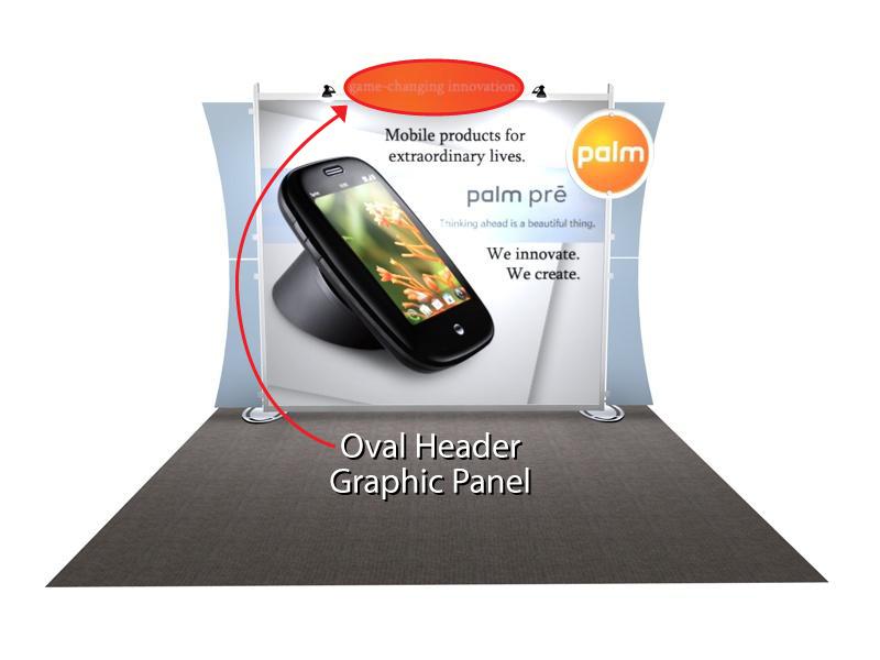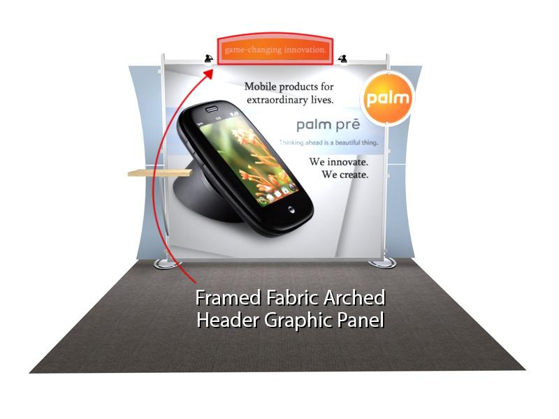 Replacement Header Graphic for the Sacagawea Display: This item is the rigid or fabric graphic that mounts to the top of the frame of the Sacagawea trade show displays displays. It can be printed on fabric or rigid material in either white or clear material matched to your PMS color number.