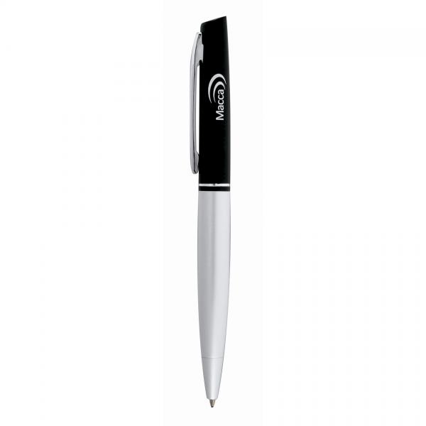 Matte barrel finish with chrome clip. Pen includes premium blue ballpoint ink cartridge.