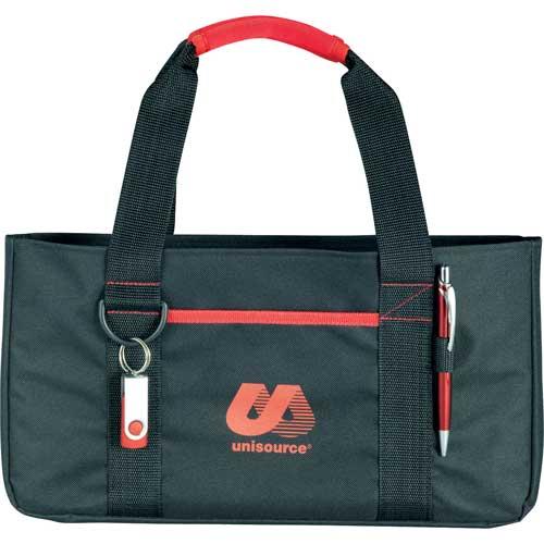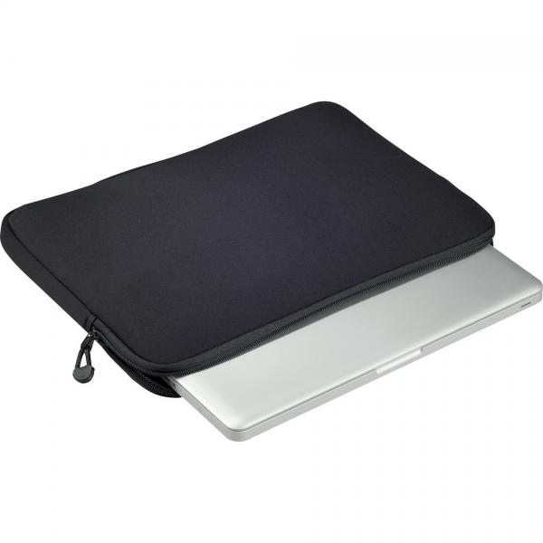 Removable main zipped compartment holds most 15" laptops and removes from sleeve. Sleeve has front open pocket, D-ring and pen loop with comfort grip carry handles.