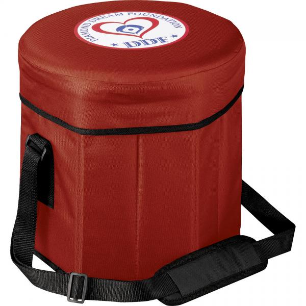 12" high and wide, this cooler seat can support up to 198 pounds and keeps up to 24 drinks or food cold with its insulated liner.