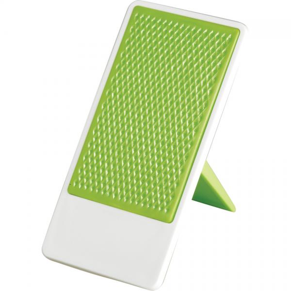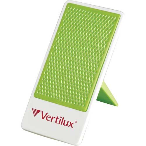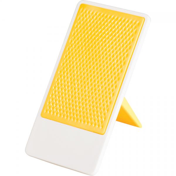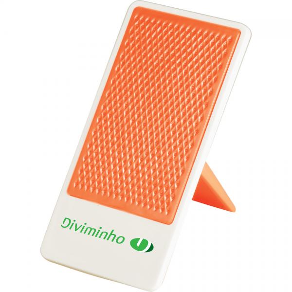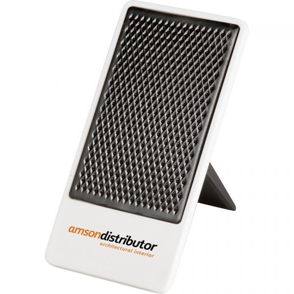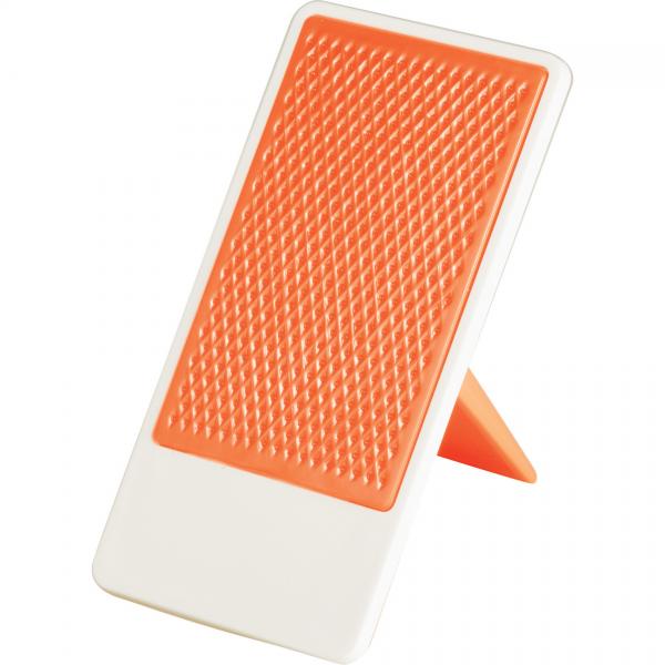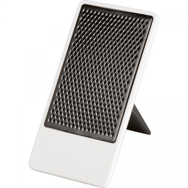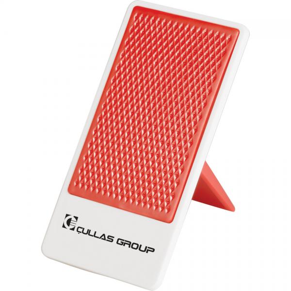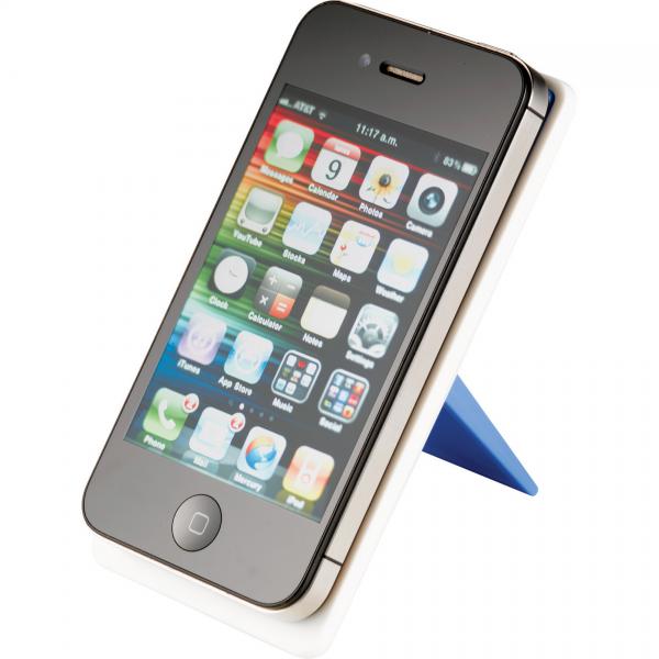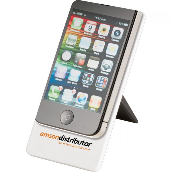 Desktop mobile phone holder with folding stand. Media device not included.