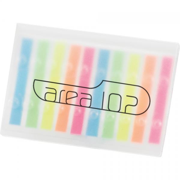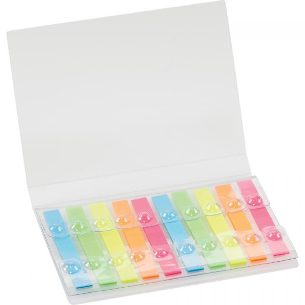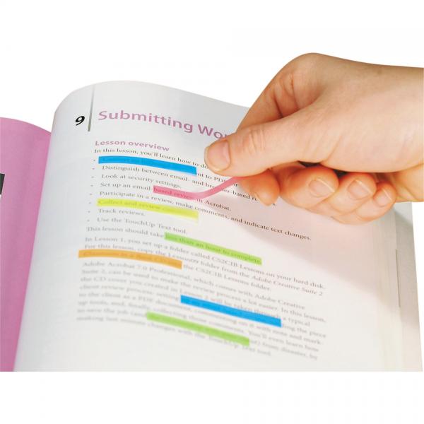 Booklet includes assorted-color highlighter sticky strips (1/4" x 1-13/16"). Highlighter strips can be re-used without permanently marking or damaging a document.