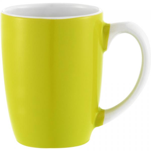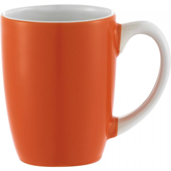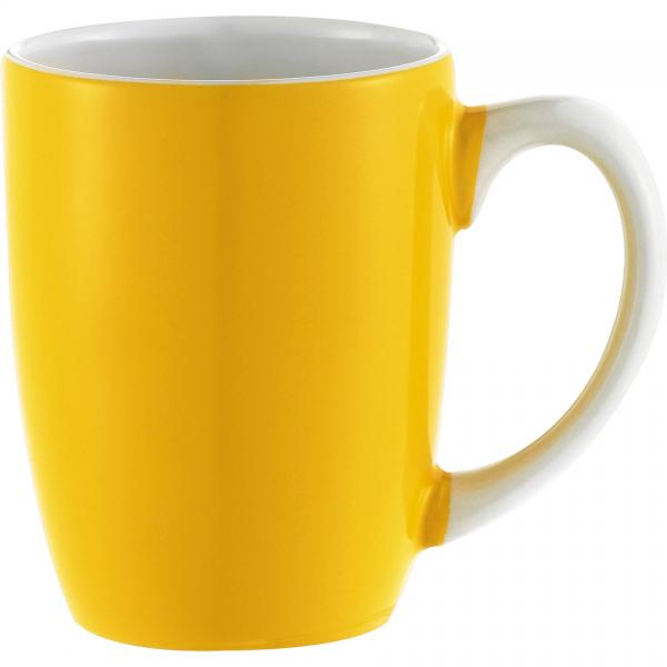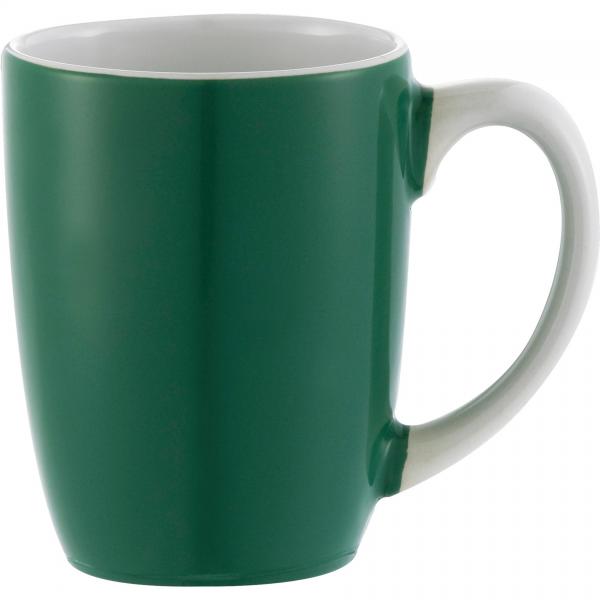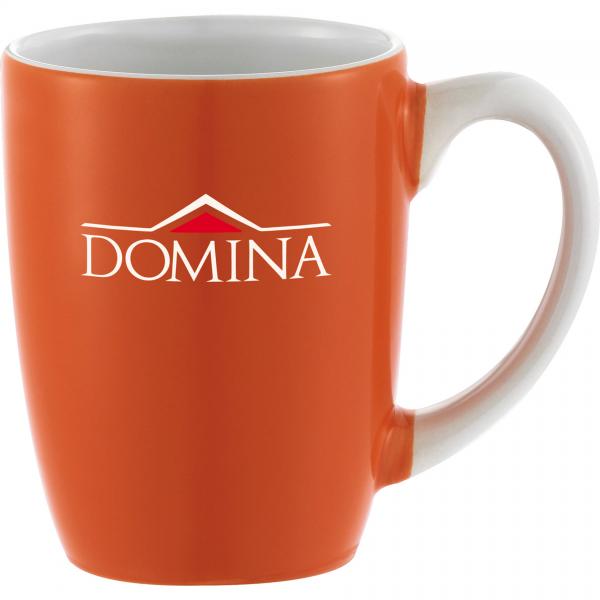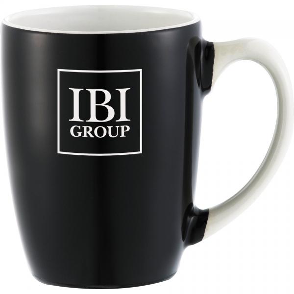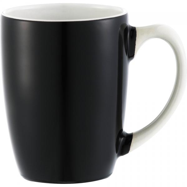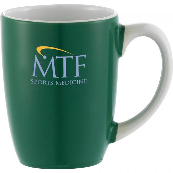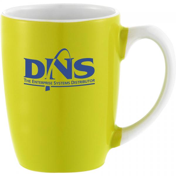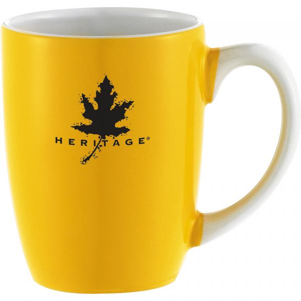 Large handle mug with white interior accent and handle. See General Information page for special ceramic item handling charge. 12-oz.