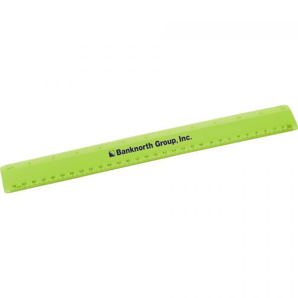 12-inch flexible ruler includes inch and metric scales.