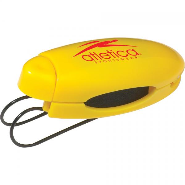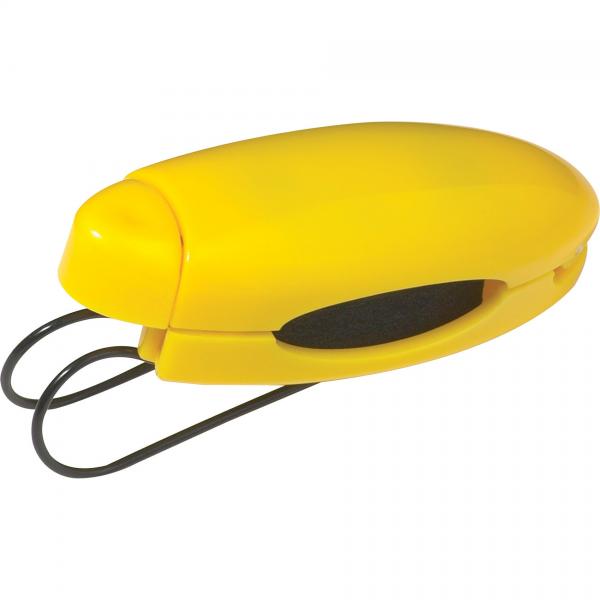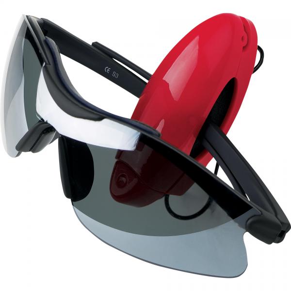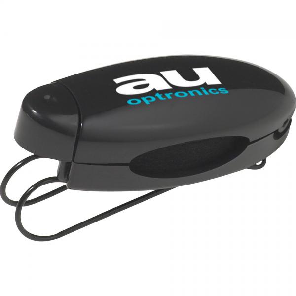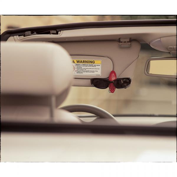 Holds sunglasses. Clips to car visor or belt.