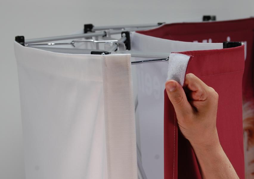 The VBurst 4x3 Flat BACKLIT is the only pop up backlit on the market that does not show hub shadows on the center of the graphic face. This process is so revolutionary that the product is patent pending.