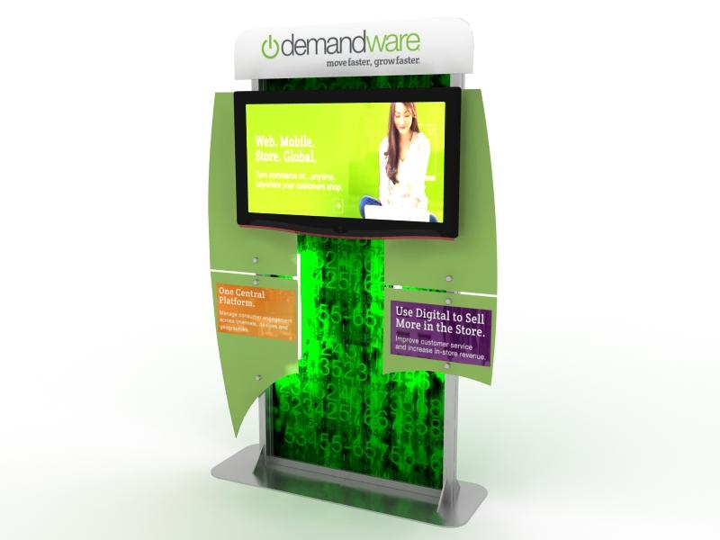 MOD-1517 Monitor Stand: Workstations and Kiosks have become indispensable to most trade show displays. It's hard to imagine a booth without a monitor, laptop, or tablet computer anymore. You'll find nearly 100 choices in the Workstation and Kiosk gallery at a range of prices and features, many with locking storage. Most are modular, meaning they disassemble for shipping, but there are quite a few custom workstations which ship fully assembled. Don't see exactly what you want? No problem. We specialize in designing and building workstations and kiosks that meet any need.