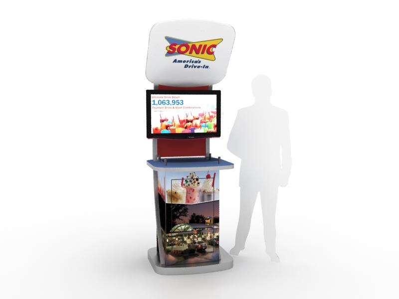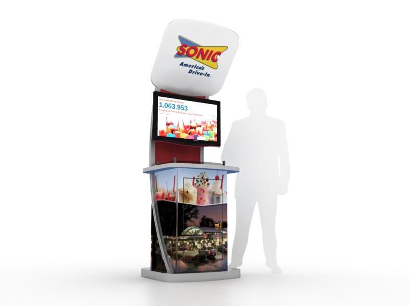 MOD-1523 Monitor Stand: Workstations and Kiosks have become indispensable to most trade show displays. It's hard to imagine a booth without a monitor, laptop, or tablet computer anymore. You'll find nearly 100 choices in the Workstation and Kiosk gallery at a range of prices and features, many with locking storage. Most are modular, meaning they disassemble for shipping, but there are quite a few custom workstations which ship fully assembled. Don't see exactly what you want? No problem. We specialize in designing and building workstations and kiosks that meet any need.