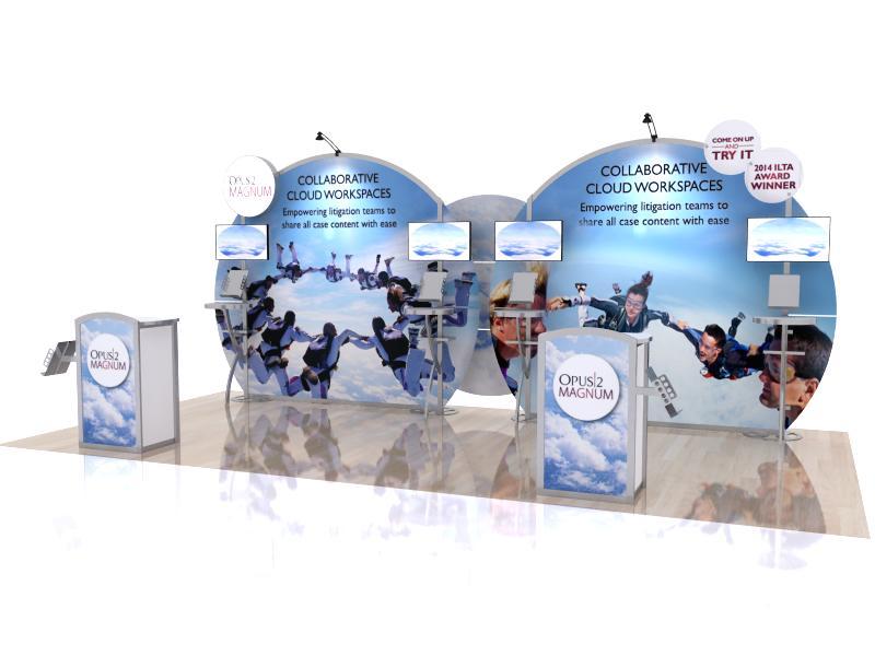 VK-1126 10 Ft Visionary Designs MEO Hybrid: It's simple. You go to a trade show to get noticed and increase sales. So, why would you ever buy a boring display? You shouldn't. The Visionary Designs MEO Series turns portable and affordable into attractive and adaptable. The MEO Hybrid is a contemporary display designed with lightweight engineered aluminum and vibrant tension fabric graphics. Using knob-assisted assembly, the MEO sets-up quickly, typically in less than 40 minutes for a 10 ft. display. All components are individually numbered and pack in durable roto-molded cases with custom die-cut foam packaging. Options include workstations, pedestals, headers, tablet accessories, and monitors.