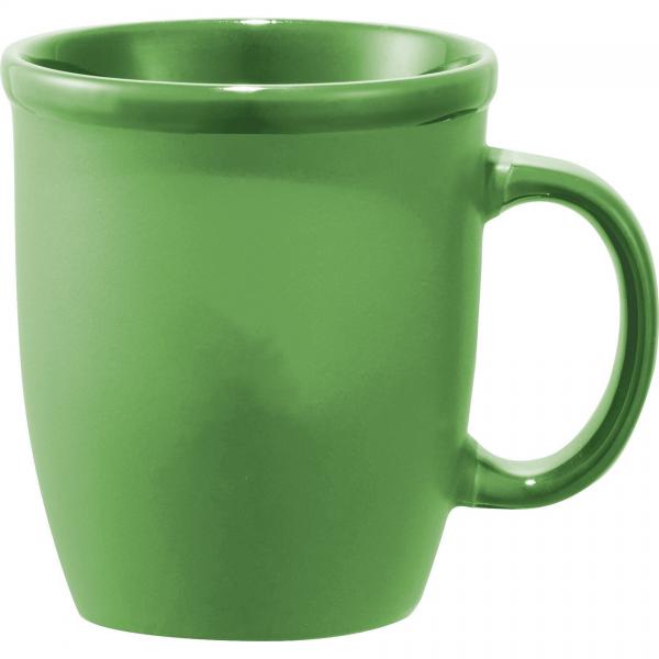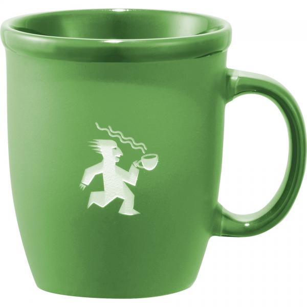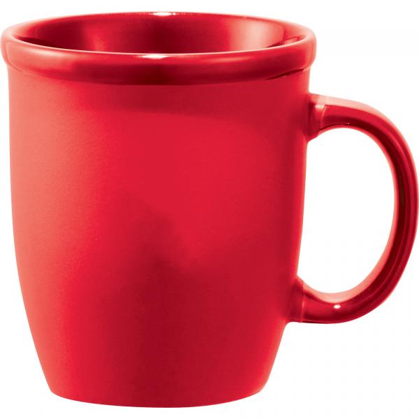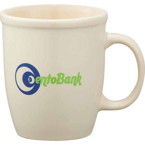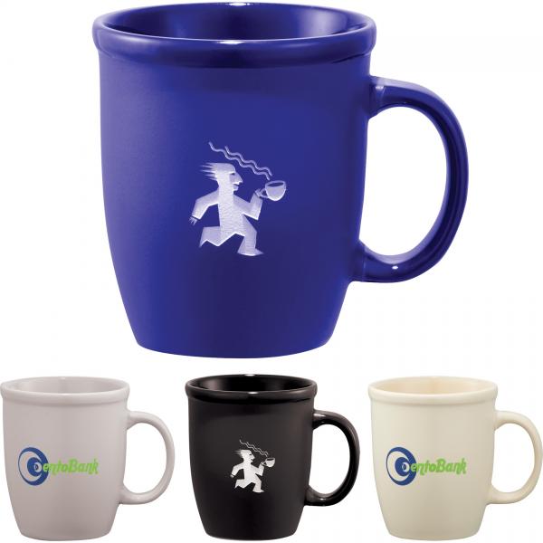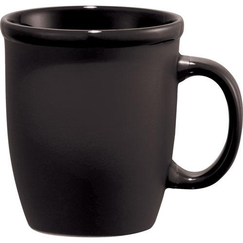 Cozy ceramic mug with a regal matte finish and a glossy inner, lip, and handle. Choose between color imprinting or our new cutting edge dishwasher safe laser decorating method. 12oz.