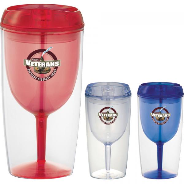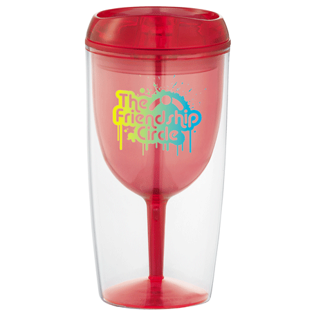 - Double-wall acrylic with the inner wall shaped like a wine glass.