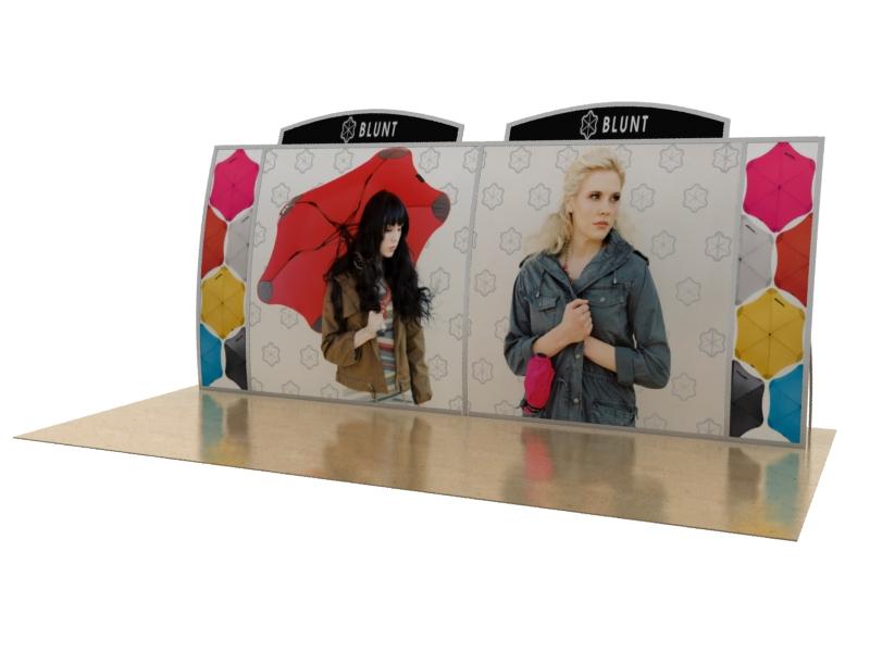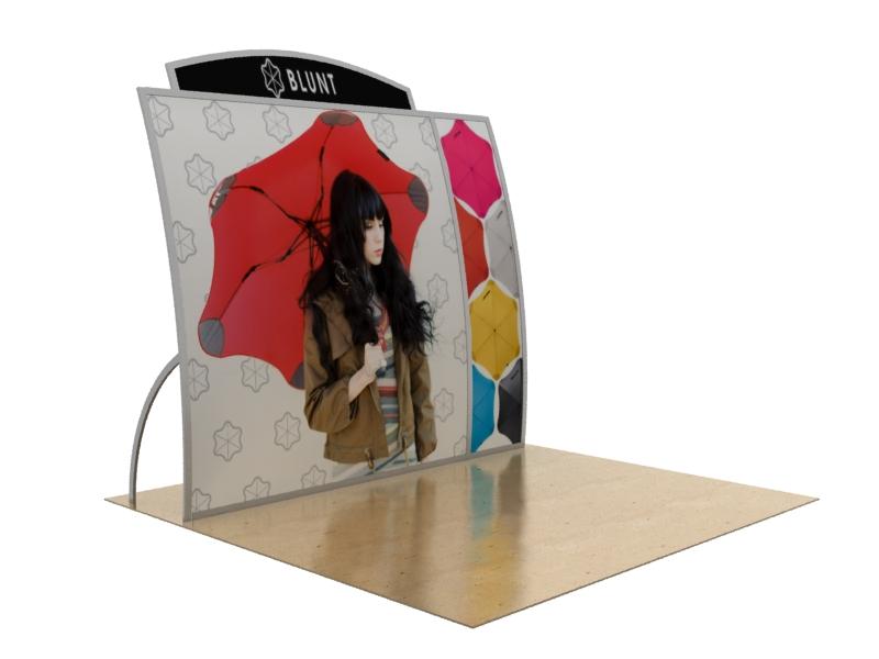 The VK-1123 Magellan Miracle's beauty is sure to WOW folks on the trade show floor, with its curved big impact graphics and sleek lightweight aluminum extrusion. Looks are only half of it, the Miracle packs small, disassembles fast, and ships in portable cases with wheels. Can be set-up in less than 30 minutes, it’s hard not to be impressed. Quick-assist knobs, and the tension fabric graphics attach with Velcro, making the whole process easy and painless.