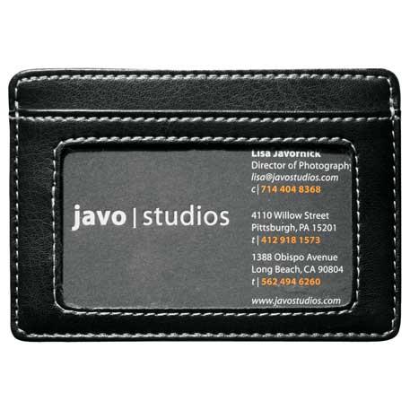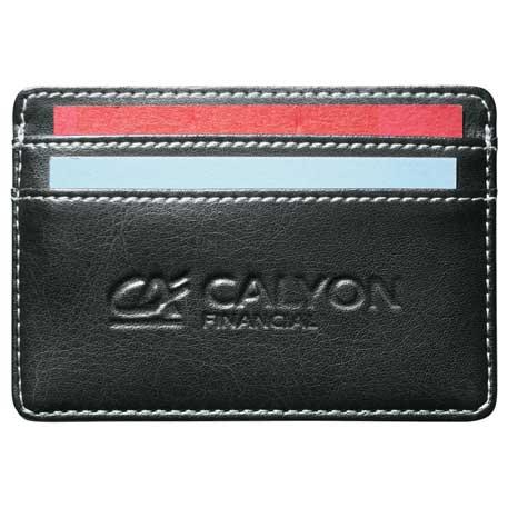 Spread brand awareness at networking functions by passing this out with pre-loaded business cards. Slim design includes two business card pockets with convenient clear ID pocket.