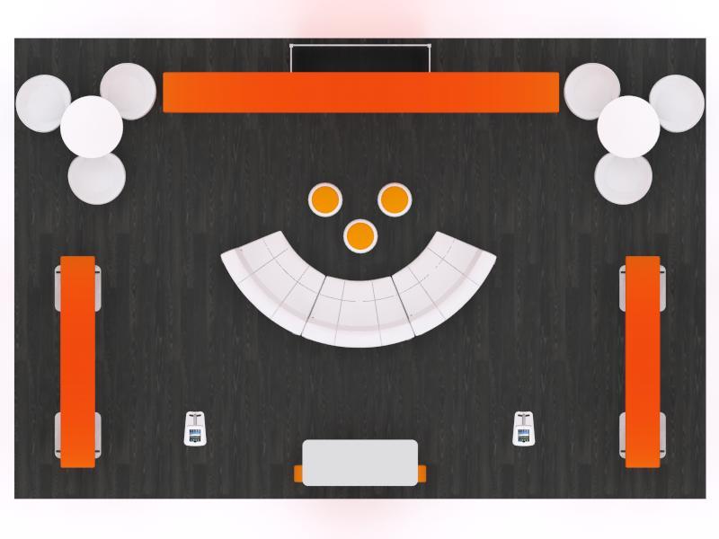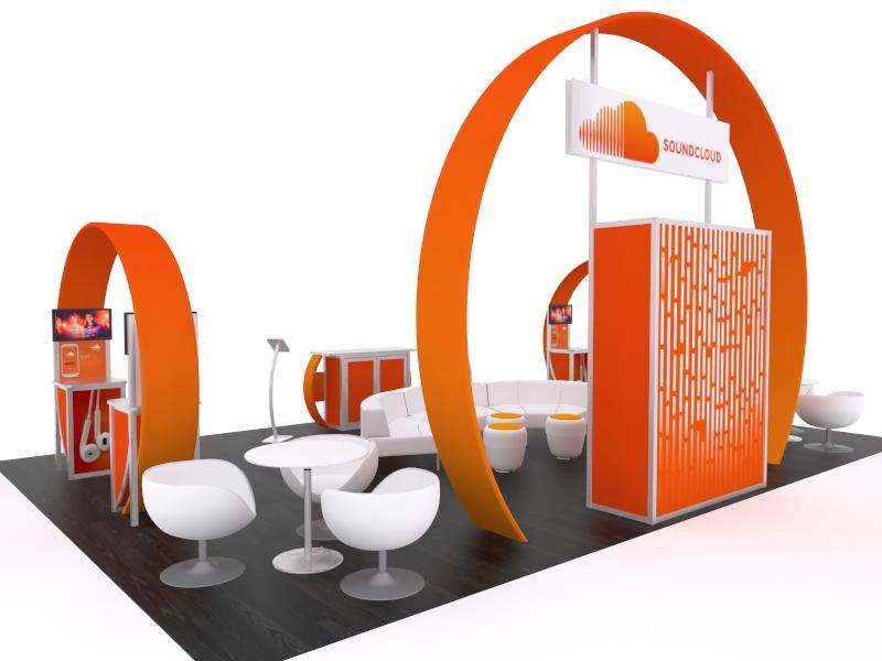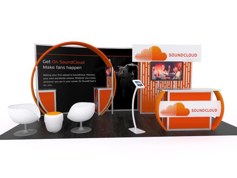 Donna Summer got it right -- You work hard for the money. So why buy three exhibits when one stunning display will do triple duty? The VK-5075, VK-3006, and VK-2968 combine a dramatic structure, high impact graphics, and practical components into reconfigurable island and inline exhibits. The exhibits include distinctive Aero rings with pillowcase graphics, workstations with storage, headers, and a large reception counter. There's even a full-size closet, a rare luxury in an inline exhibit. The larger graphics are vibrant tension fabric, which is lightweight, durable, and affordable. And if that's not enough, there are two MOD-1336 portable tablet stands for an iPad, or choose an alternative tablet version.