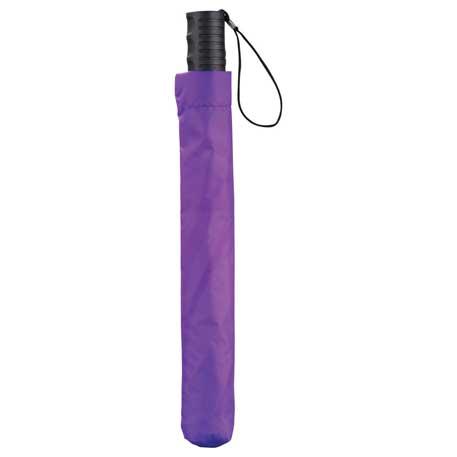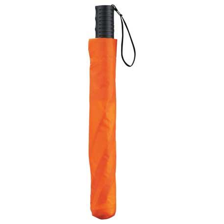Automatic opening. Pongee canopy with matching color case. Two-section folding metal shaft. Ergonomic matte black plastic handle with wrist strap. Folds to 15" long. Available for one-day turn with Sureship.