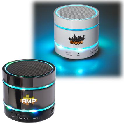 Aluminum case cylinder speaker with steel mesh cover and no-slip bottom. Push button to answer phone calls. Speak hands-free into built-in microphone. Also play MP3 files though a USB flash drive or TF card.