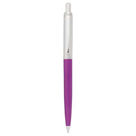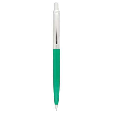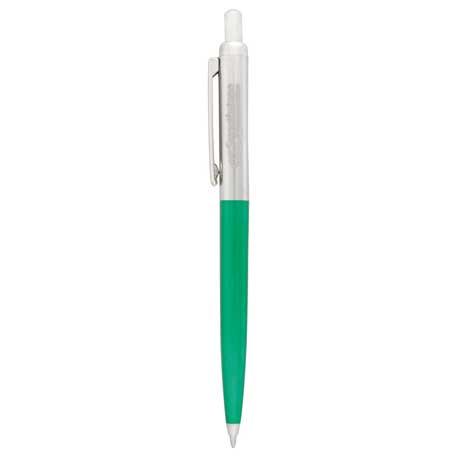 Retractable click action mechanism. Standard black ballpoint ink cartridge.