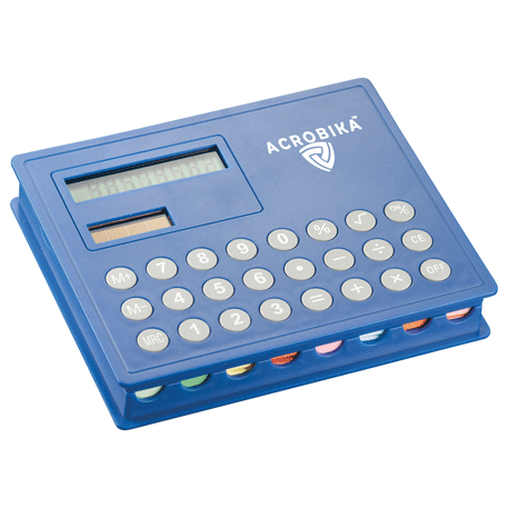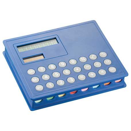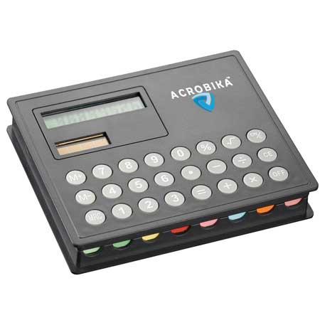 Hard cover memo case includes calculator, 8 assorted-color sticky arrows, 3 1-1/2" x 2" sticky notepads. Calculator features on/off power buttons. Includes solar power battery backup.