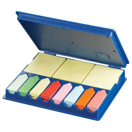 - Hard cover memo case includes calculator, 8 assorted-color sticky arrows, 3 1-1/2" x 2" sticky notepads.