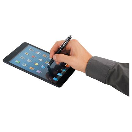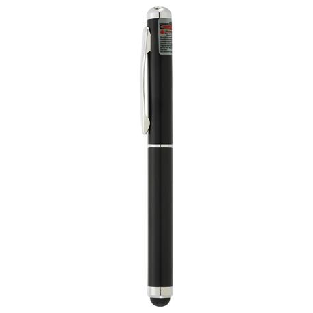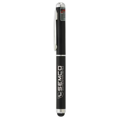 - The 4-in-1 has you covered with functions that include: ballpoint pen with black ink and rubber stylus tip, with flashlight and laser integrated into upper barrel.