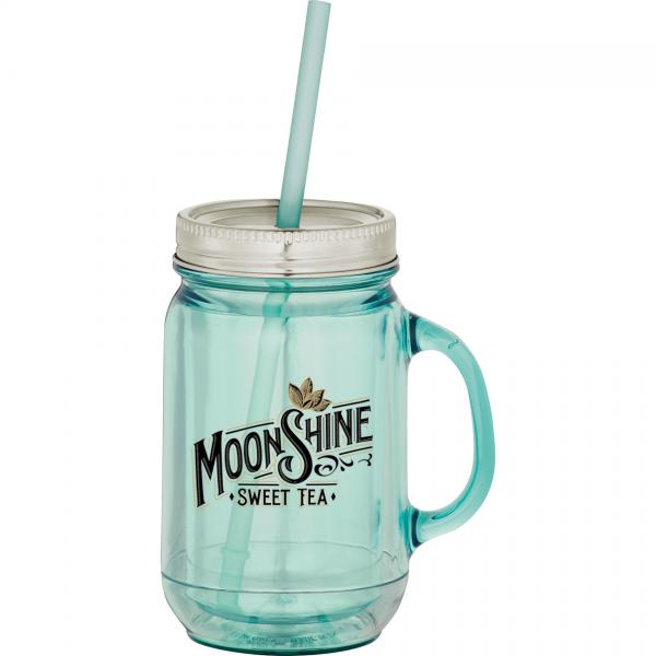 Retro vintage mason jar with sea glass color and stainless lid. Double-wall acrylic material keeps your beverage cool and condensation free. BPA Free. 20oz.