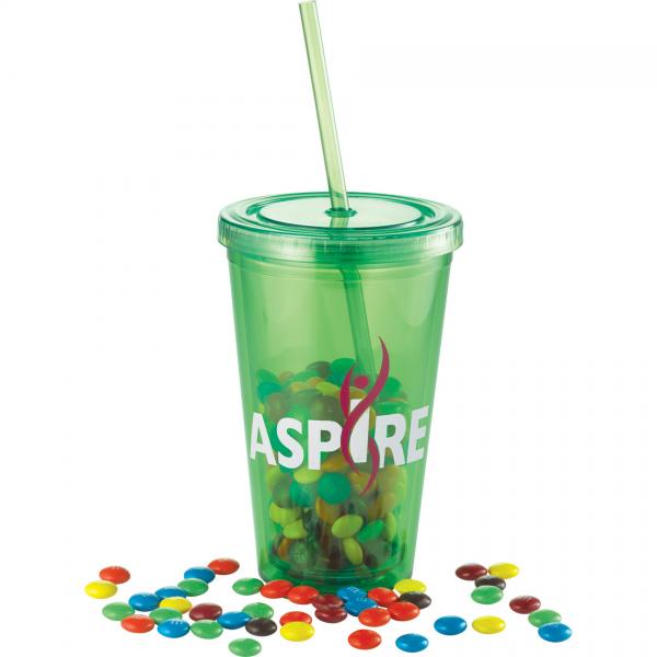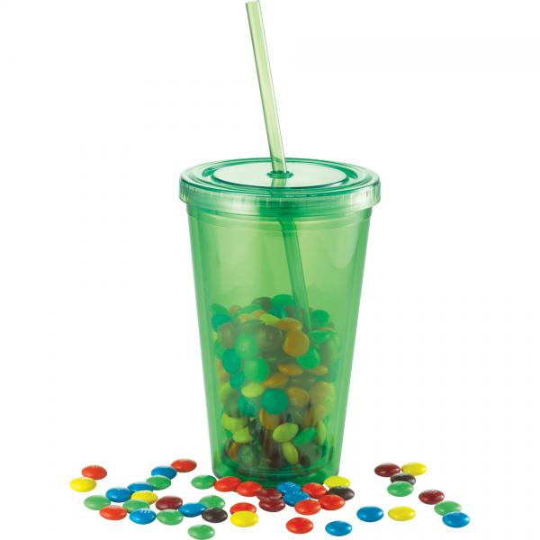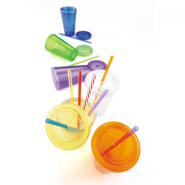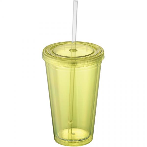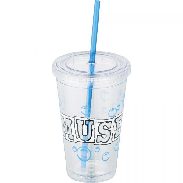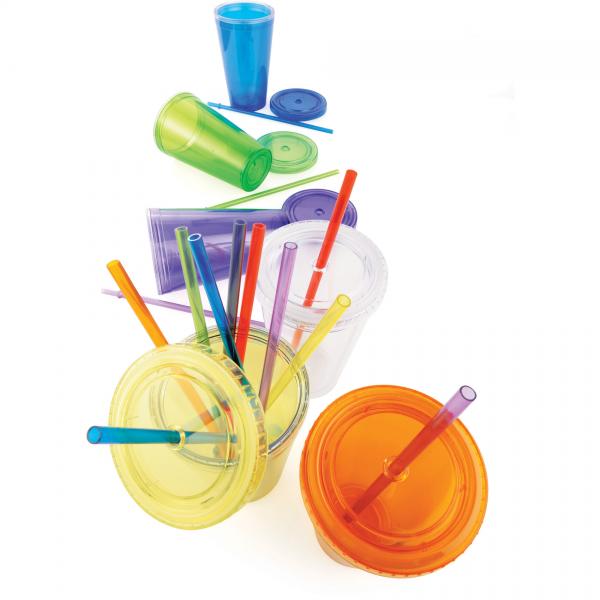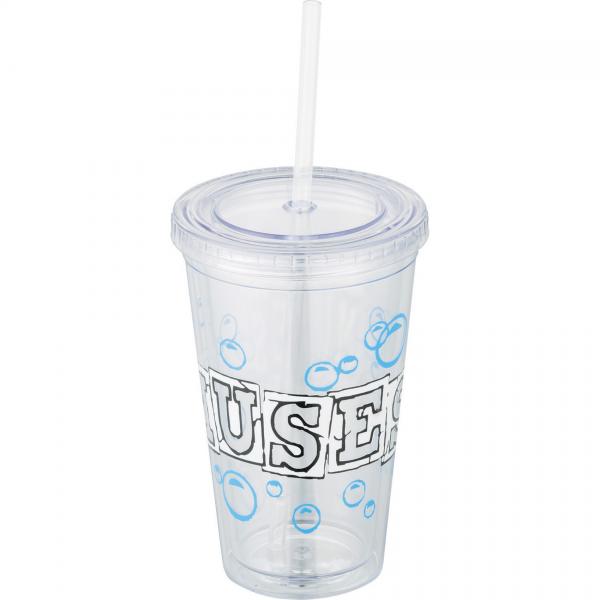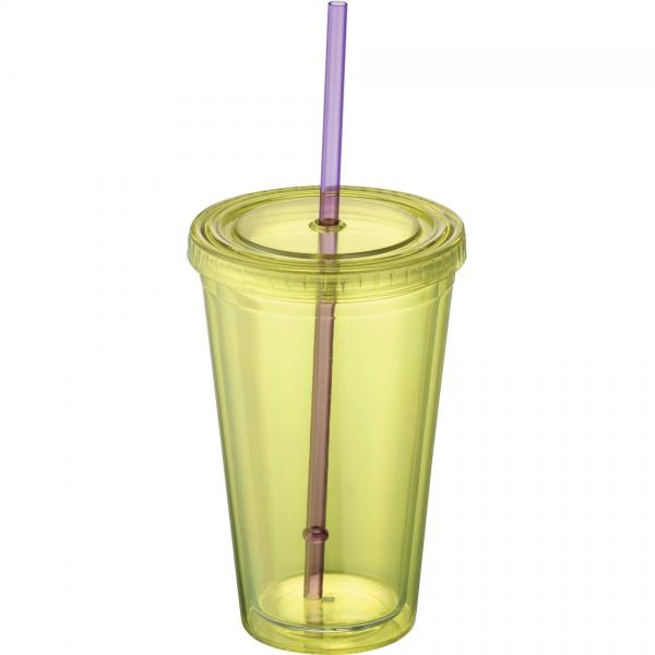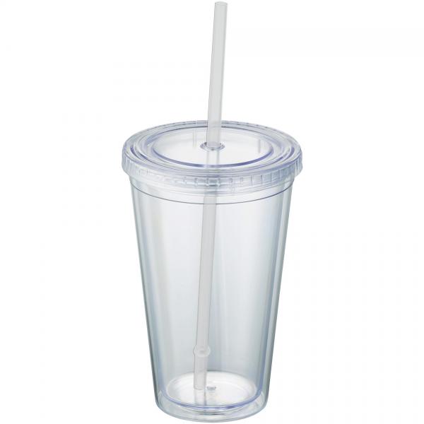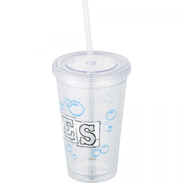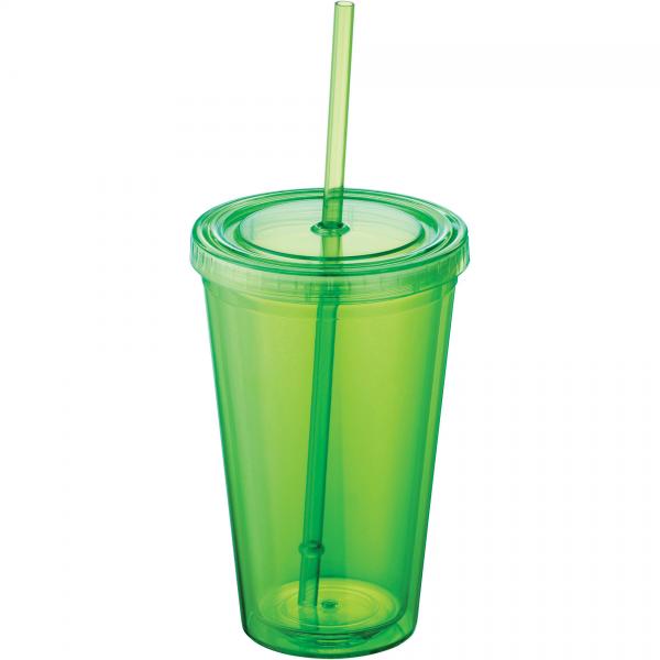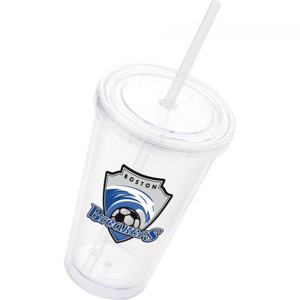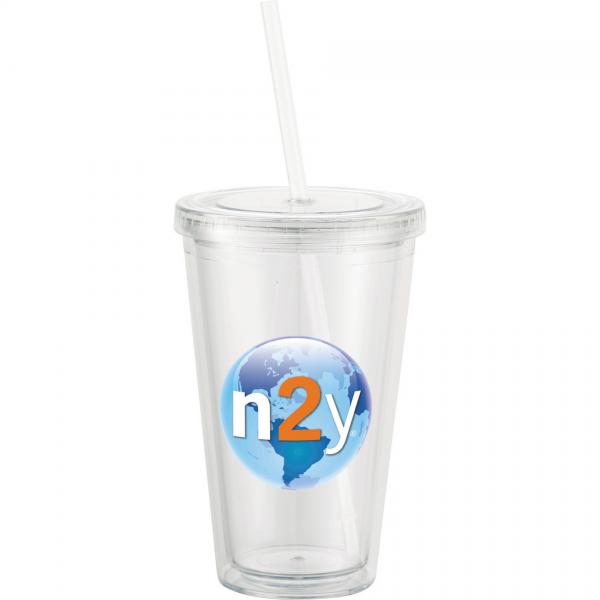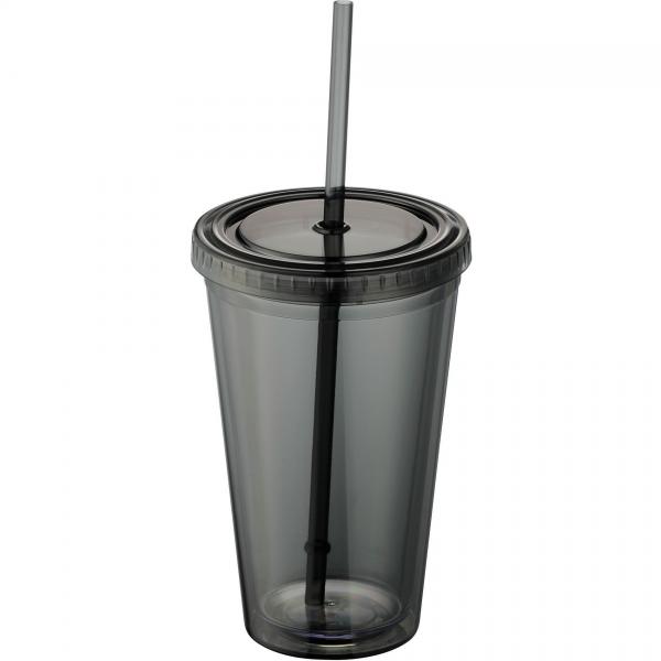Double-wall acrylic tumbler and straw with stopper. Product ships with matching color straw unless specified otherwise in purchase order. BPA free. 16oz.