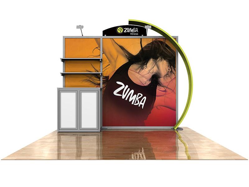 The RE-1029 is a creative and unique display that belongs to eSmart Inline Display line. eSmart displays are design-driven, reconfigurable, and user-friendly. Using the most sustainable materials on the market, this display is not only built to be vibrant, but green. The RE-1029 eSmart Zumba includes shelves perfect for displaying products, locking storage for keeping your valuables safe, and beautiful large format tension fabric graphics designed to keep your audiences attention.