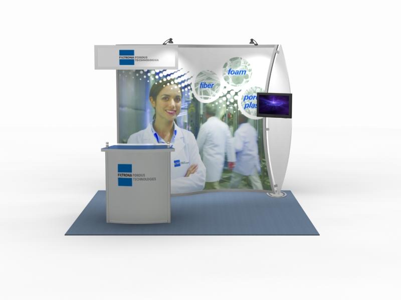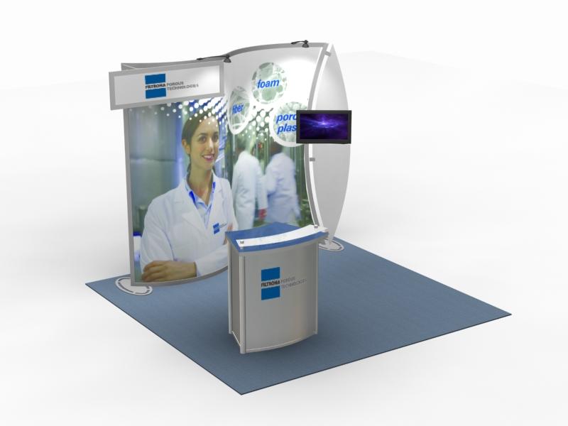 The VK-1062 Magellan Miracle’s beautiful looks will blow folks away on the trade show floor, with its curved 8 ft. high graphics. Assembly and teardown is quick and easy, you’ll be gone in a flash. The Miracle packs small, disassembles fast, and ships in portable cases with wheels. The durable aluminum frame sets-up using quick-assist knobs, and the tension fabric graphics are attached via Velcro. Simple as can be.