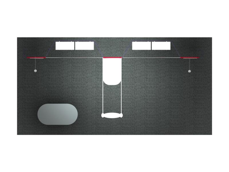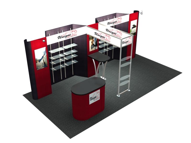 FF-202 Fabric Display: Display a large amount of product with the Intro FF-202 flat panel display and expose your booth guests to all your products in addition to a large oval counter with inside storage.