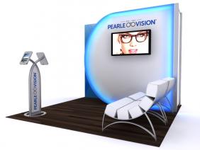 VK-2957 Hybrid Booth 20 Ft Visionary Designs: Lighting attracts attention, and subtle lighting like edge-lit graphics provides a soft, upscale appearance. The VK-1116 and VK-2957 demonstrate how a clean, visually strong exhibit with graceful curves can transform a modular inline into a custom-looking display. The Silicone Edge Graphics minimize the metal structure while focusing attention on the graphics and the monitor. Both configurations include ample storage, unusual in an inline. There's space for casual furniture and an attractive iPad stand for demos. Visionary Designs combines vibrant tension fabric graphics, durable aluminum extrusions, and elegant laminates into an unmistakable island or inline trade show exhibit. Browse through the Visionary Designs Galleries with almost 100 display ideas to choose from. Don't see exactly what you want. No problem. We'll design a display that fits your unique vision and at a price that... |