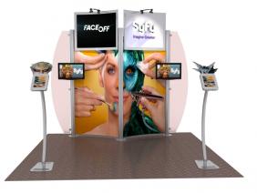 VK-2927 Hybrid Inline 20 Ft Visionary Designs: The VK-1325, VK-2927, and VK-3002 are designed to be adaptable, show to show, year after year. Start with the 10 ft. version, then expand into the 20 ft and 30 ft. displays. The engineered aluminum frame makes them sturdy and versatile, and the large tension fabric graphics means you're message will be seen. All include at least two MOD-1312 iPad stands and backwall workstations. The larger versions have a presentation or demo area with a larger monitor. With a Visionary Designs display, you can achieve whatever you want – no limitations . . . but at a price thousands of dollars less than a custom exhibit. Visionary Designs combines vibrant tension fabric graphics, durable aluminum extrusions, and elegant laminates into an unmistakable island or inline trade show exhibit. Browse through the Visionary Designs Galleries with almost 100 display ideas to choose from. Don't see exactly... |