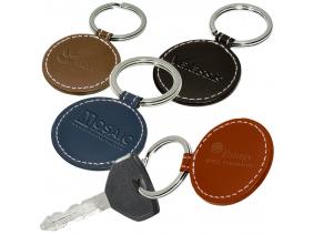 Prime LG-9082 | Limelight Round Leather Key Fob: Hand-stitched recycled cowhide leather with metal flat-edge split ring |