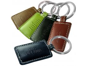 Prime LG-9083 | Limelight Rectangular Leather Key Fob: Hand-stitched recycled cowhide leather with metal flat-edge split ring. An Eco-Responsible product. |