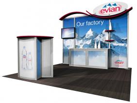 Eco-4019 Rio Island: The eSmart Island Exhibits are design-driven, reconfigurable, and high-impact. Many islands can easily be reconfigured into 10 x 10 or 10 x 20 displays for smaller shows. We use the most sustainable materials on the market, and eSMart displays prove that you don't need to look green to be green, and you don't need to spend more either. You'll always get the best of both with an eSmart. With endless accessory options, low price points, and free design services, look no further than eSmart islands. Don't see exactly what you want? Give us a call or click the Send Me More Information button. We'd love to design an affordable display that meets your specific exhibit marketing goals.