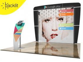 VK-1118 SEGUE Inline Lightbox Exhibitors have asked for a fully backlit modular exhibit with all the bells and whistles for twenty years. But until now, it's been cumbersome, expensive, or simply impossible. Not anymore. Introducing the VK-1118 and VK-2959 displays with SuperNova LED technology. These modern hybrid displays combine vibrant tension fabric graphics with lightweight aluminum extrusion for a versatile and attractive solution at any trade show. The displays include storage, large monitor capability, backlighting, and standoff graphics. In addition, the MOD-1316 iPad backwall clamshell is the ideal solution for a tablet in the booth space. There's no question . . . this exhibit, whether the 10 ft. or 20 ft. version, will the star of any trade show. The displays pack in durable roto-molded cases with wheels and include reusable die-cut foam packaging. All parts are individually numbered to match the detailed set-up instructions. For more... |