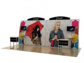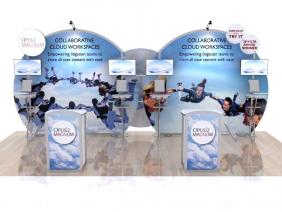 VK-2965 MEO Hybrid 20 Ft Visionary Designs It's simple. You go to a trade show to get noticed and increase sales. So, why would you ever buy a boring display? You shouldn't. The Visionary Designs MEO Series turns portable and affordable into attractive and adaptable. The MEO Hybrid is a contemporary display designed with lightweight engineered aluminum and vibrant tension fabric graphics. Using knob-assisted assembly, the MEO sets-up quickly, typically in less than 40 minutes for a 10 ft. display. All components are individually numbered and pack in durable roto-molded cases with custom die-cut foam packaging. Options include workstations, pedestals, headers, iPad accessories, and monitors. With the MEO Hybrid, you can start with a 10 ft. version and expand to 20 ft. inline at any time. There’s only one MEO: Upscale Hybrid Design, Portable Value, High Quality Construction. Proudly Made in the USA.