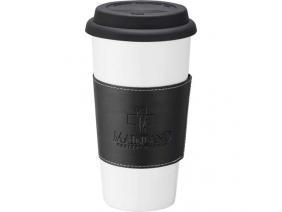 Leeds 1622-50 | Mega Double-Wall Ceramic Tumbler With Wrap 15oz: Silicone lid. Double-wall ceramic tumbler. Vinyl sleeve matches lid. 6.5" tall without the lid. Microwave Safe. Remove vinyl wrap and silicone lid before placing in the microwave. 15oz. |