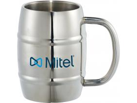 Leeds 1624-38 | Growl Stainless Barrel Mug 14oz: Ready for a refill? Double-wall stainless steel barrel mug will keep beverages at desired temperature. Stainless steel handle. 14oz. |